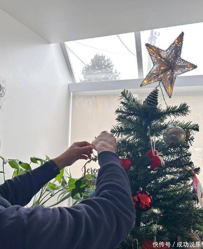 还有张是她拍老公挂装饰的特写,没露脸却甜到齁,夫妻俩互相拍照也太有爱了吧!圣诞袜的特写照里还藏着全家福,明显是想借这些照片打破谣言呀。她还拍了圣诞树上的小装饰,上面 “love you” 的字样超显眼,连小物件都在撒糖,也太会了哈哈哈!