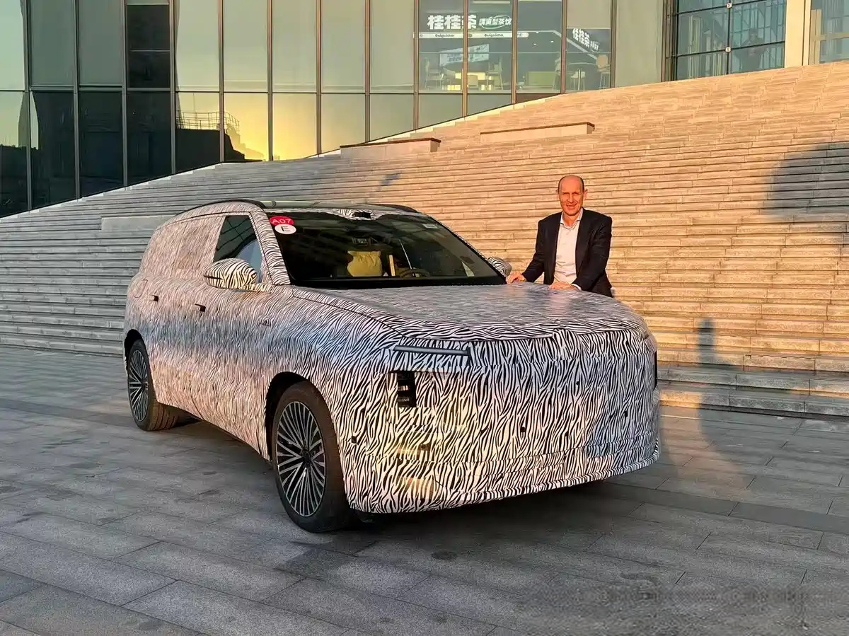我们结合社媒上的照片和此前的概念车一起来看,可以看到新车有着非常厚实的伪装,但量产版和概念车有着相似的轮廓和线条,所以应该会比较接近。具体来看,整个车头非常高耸且饱满,给人的感觉非常大气。大灯为分体式设计,上方为贯穿式的日行灯带,下部则是LED大灯,这一设计和概念车一致,估计细节方面会有些许区别。LOGO为可发光设计,科技感应该不会。下部还配备了主动式进气格栅,当然另一大看点仍在于车顶的激光雷达。